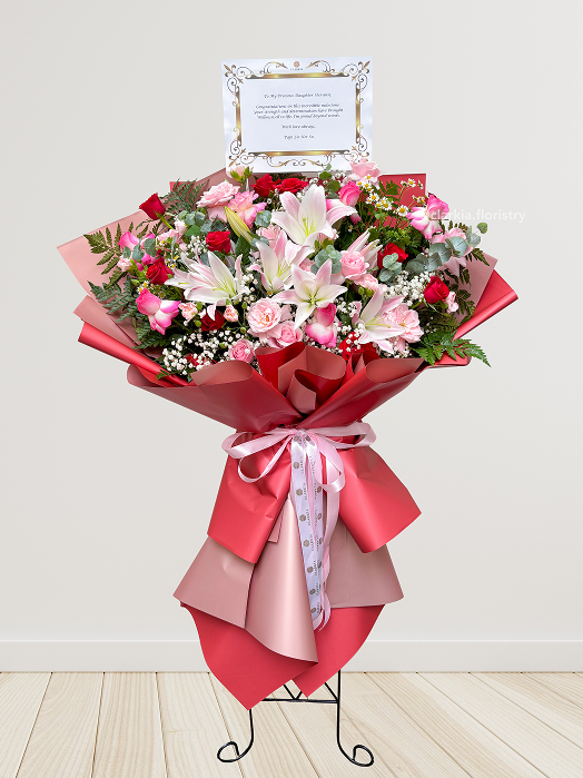 Sebagai toko yang menjual papan bunga, Clarkia Floristry menyediakan berbagai pilihan papan bunga dan standing yang bisa Kamu pilih sesuai dengan acara dan kebutuhanmu. Apakah Kamu ingin menyampaikan ucapan selamat, dukacita, atau perayaan, kami memiliki desain yang pas untuk setiap momen.