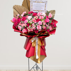 Standing Flower ini dirangkai sempurna dengan bunga segar berwarna-warni. Pilihan yang tepat untuk merayakan momen besar, seperti anniversary, grand opening, dan masih banyak lagi.